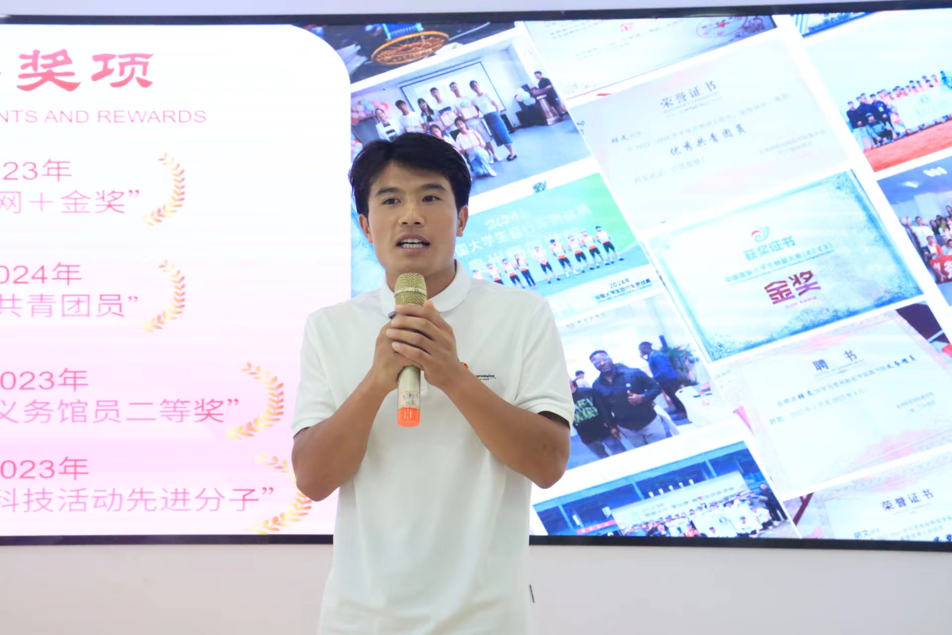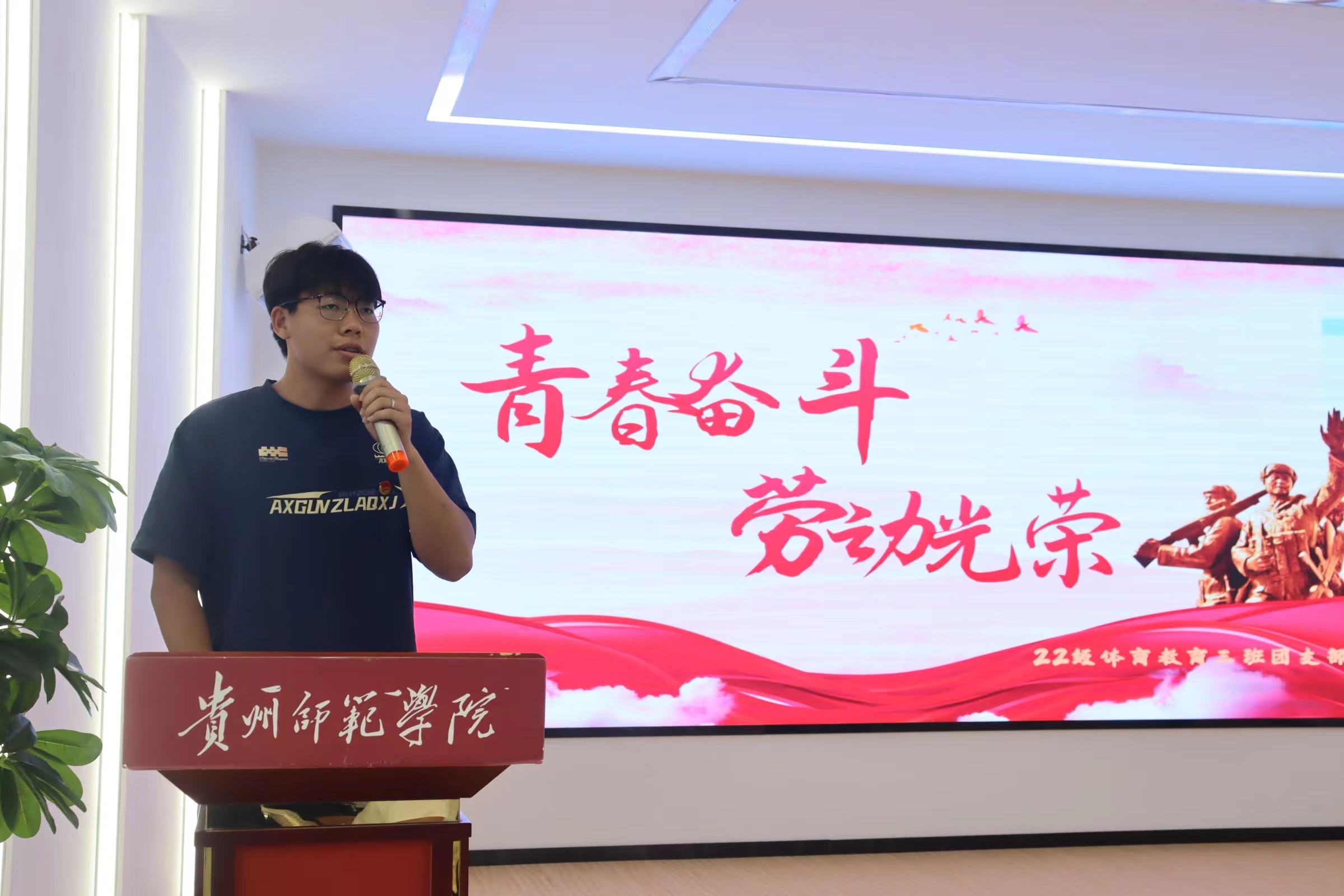 此次团日活动以“青春奋斗 劳动光荣”为主题。活动以各行业一线劳动场景短视频开场,同学们围绕活动主题结合大学生身份实际展开讨论发言,纷纷表示:劳动光荣,劳动创造美好生活,伟大祖国的日益强大与每个中国人的辛勤劳动是分不开的;2024年省“五一”劳动奖章获得者王奉涛老师,以“我的成长”为主题分享了自己的奋斗历程,他用星跳精神勉励大家:星跳不停,奋斗不止,追逐光,成为光,散发光;接着2022级体育教育三班全体同学一首《中国青年》诗朗诵将现场活动推向了高潮,青春奋斗的澎湃激情在同学们心中不断的共鸣着;随后励志团员代表唐元元、封远娇、胡文分别向同学们分享了自己的学习和生活心得与体会,本次主题团日活动在2022级体教三班活力无限的视频中结束。