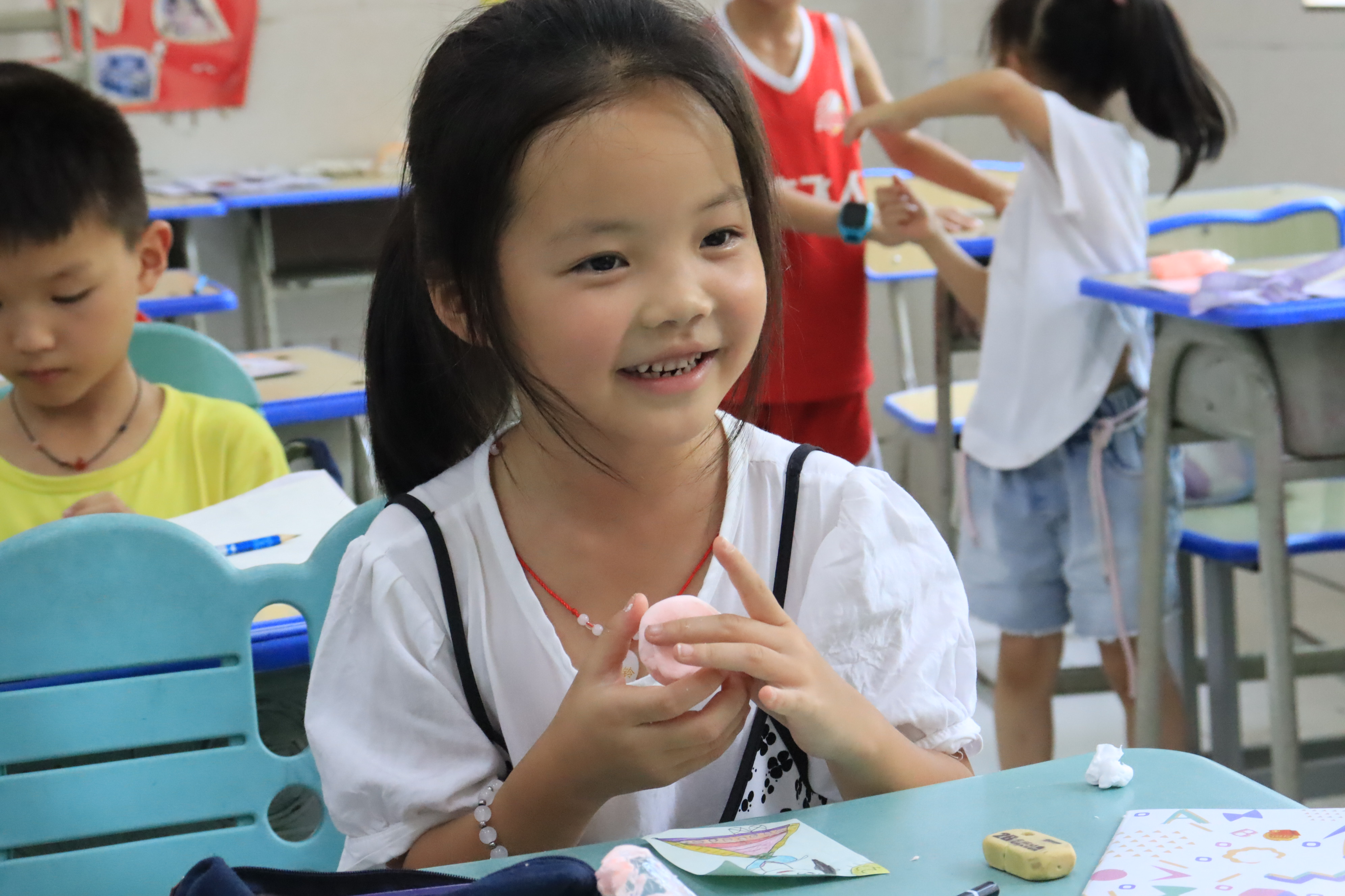 在足球场上尽情驰骋后,又迎来了充满趣味与创意的手工课。课上,孩子们积极与老师互动,热情高涨。老师精心指导,耐心解答孩子们的问题,启发他们的想象力和创造力。孩子们充分发挥自己的动手能力,用黏土塑造出一个个生动可爱的作品。有威风凛凛的恐龙、蜿蜒灵动的蛇、还有色彩缤纷的棒棒糖等等,这些栩栩如生的作品不仅展现了孩子们丰富的内心世界,更体现了他们在手工制作中的成长与进步。通过本节手工课,孩子们不仅提高了动手能力,还培养了对美的感知和对生活的热爱。