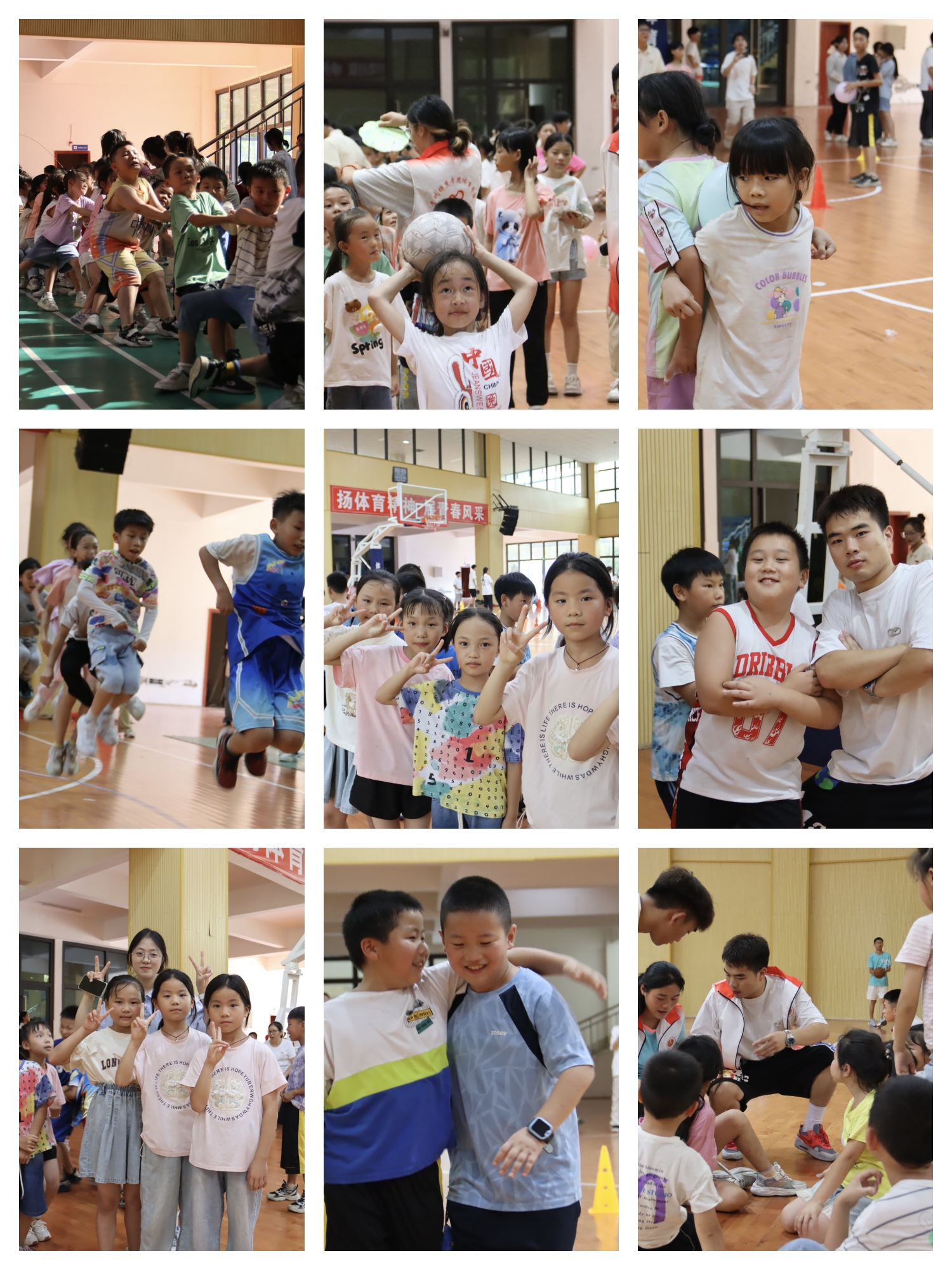 本次运动会设置了一系列趣味项目。运动会开始前,志愿者为学生们详细介绍各种游戏的内容及规则,包括“拔河比赛”“背夹气球”“绳舞飞扬”“篮球碰碰碰”等,并引导学生树立“友谊第一、比赛第二”的价值理念,号召同学们积极参与游戏活动,注意自身安全。