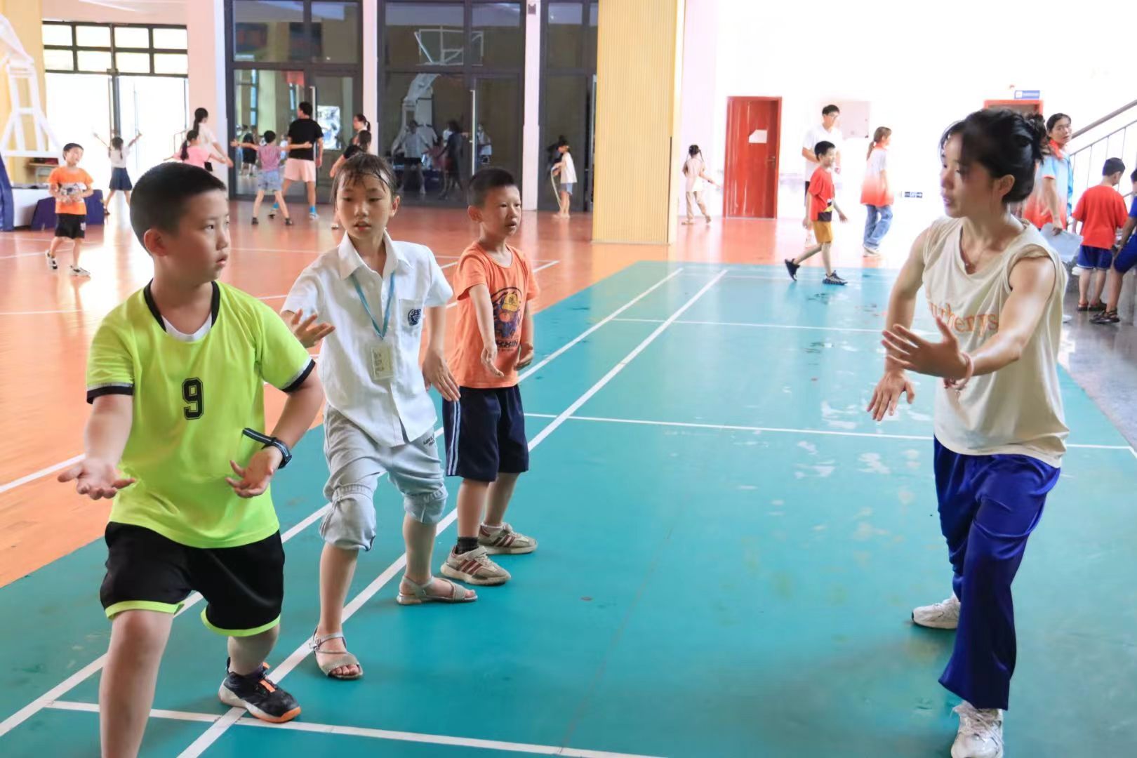 下午,志愿者队伍组织儿童们进行了丰富多彩的节目排练,包括跳绳、拳击及啦啦操等多个项目。阳光洒满操场,为活动现场增添了几分庄重与温馨。志愿者们穿梭其间,以坚定的目光传递着对孩子们的深切期望与鼓励。