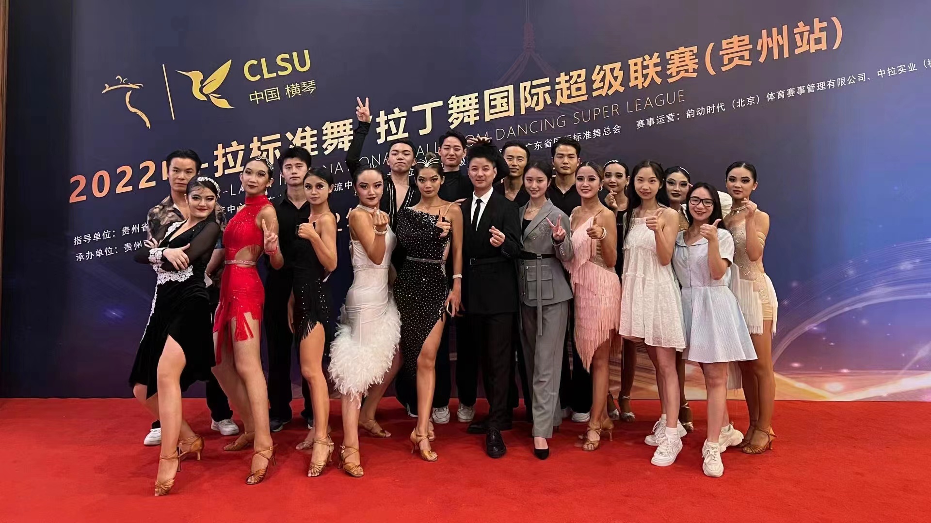 此次活动邀请了贵州省国际文化科技交流中心秘书长袁玮,广东省国际文化交流中心副秘书长林曙光,广东省国际文化交流中心理事、广东省国际标准舞总会常务副会长龙卫红等嘉宾参与此活动。本次活动设有普通高校女子单人拉丁舞,普通高校男子单人拉丁舞,业余新秀女子单人拉丁舞等共设100多个组别,我校DT舞蹈队在学院领导的大力支持下,由教练员老师董涛带队,通过常态化训练以及暑假针对性集训,对双人组合以及单人组的反复打磨,秉着不达目的不罢休的师院精神,层层梯进,在本届超级联赛中喜获佳绩。获奖情况如下:
