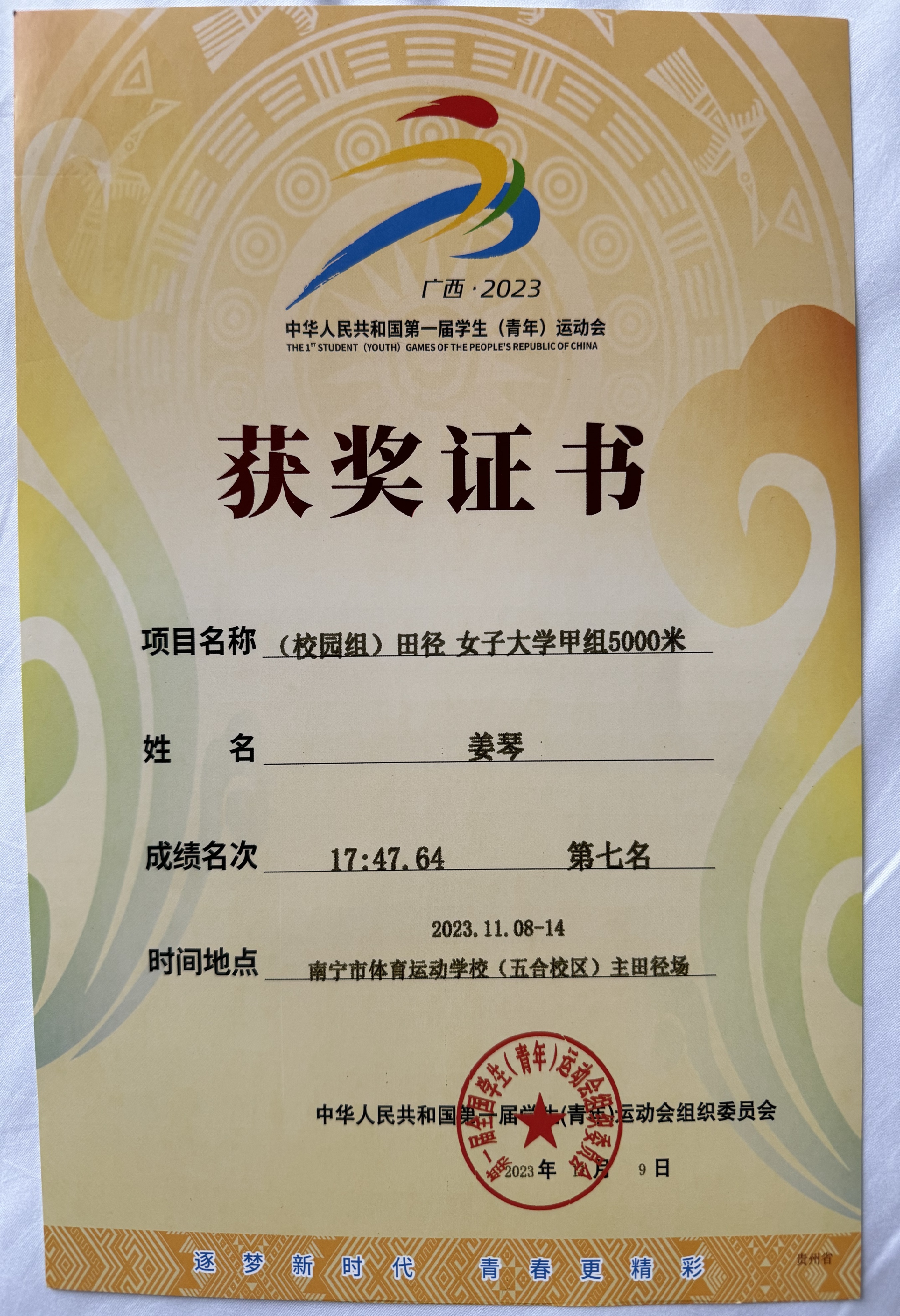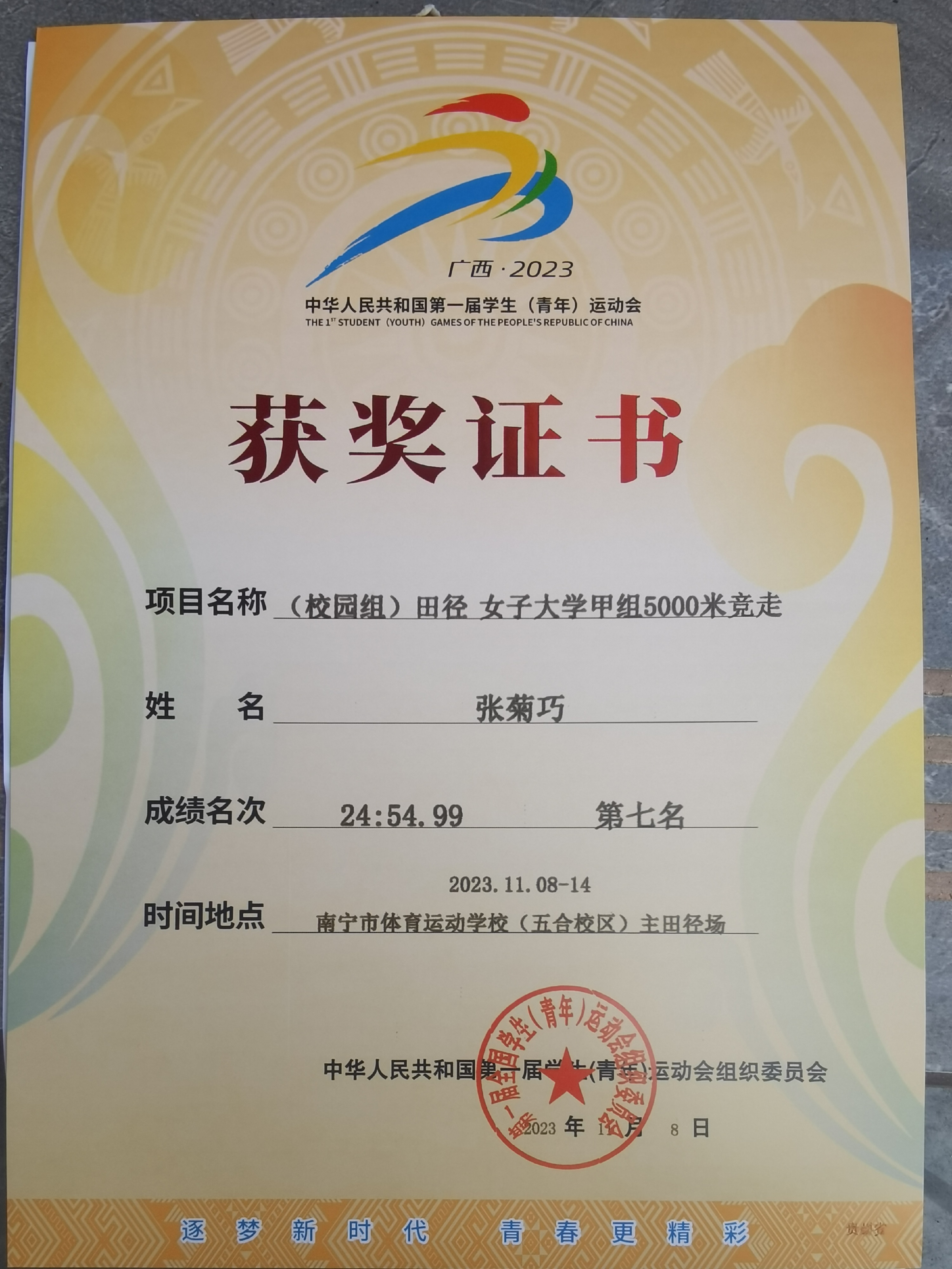 田径教师肖庆群担任教练。为了迎接本次盛会,运动员们严格按照教练员制定的计划进行了为期一年多的科学系统训练。本届赛事经过8天的激烈角逐,我校田径健儿不畏强敌,顽强拼搏,赛出了风格,赛出了最佳水平,其中,姜琴、张菊巧分别在两个参赛选手多数来自各省市专业队、竞争激烈程度极高的女子甲组5000米和女子甲组5000米竞走比赛中,分获第七名,实现了我校田径队在国家级综合性大型比赛中名次零的突破。