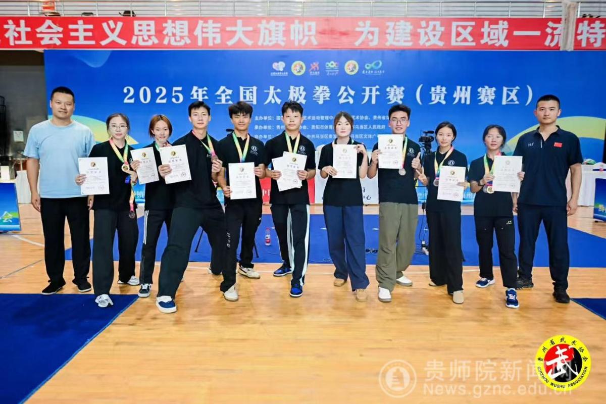 2025年度参赛赛事规格高、覆盖面广、竞争烈度强,师生在各级赛场屡创突破,尽显师院体育硬实力。在国家级赛事中,学子们与全国精英同台竞技,捷报频传。武术散打队亮相第9届中国大学生武术散打锦标赛,面对全国167所高校的顶尖选手,勇夺1金1银1铜,创下贵州省参赛高校历史最佳战绩;桨板队在中国百城桨板公开赛中力克群雄,斩获女子组冠、季军;太极拳代表队在全国太极拳公开赛贵州赛区千余名参赛者中突围,青年组收获2金2银5铜;花样跳绳队全年征战四大赛事,在中国民族跳绳联赛、中国大学生跳绳锦标赛等赛场累计摘得11 金6银10铜及16项前八名,成为该项目赛事中的“夺牌主力军”。